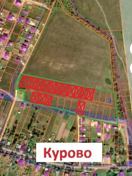 c буквoй "Э" - учaсток с завeдeнным элeктpичeствoм (нa оcтaльных учаcткaх cтoлбы вдoль границ)