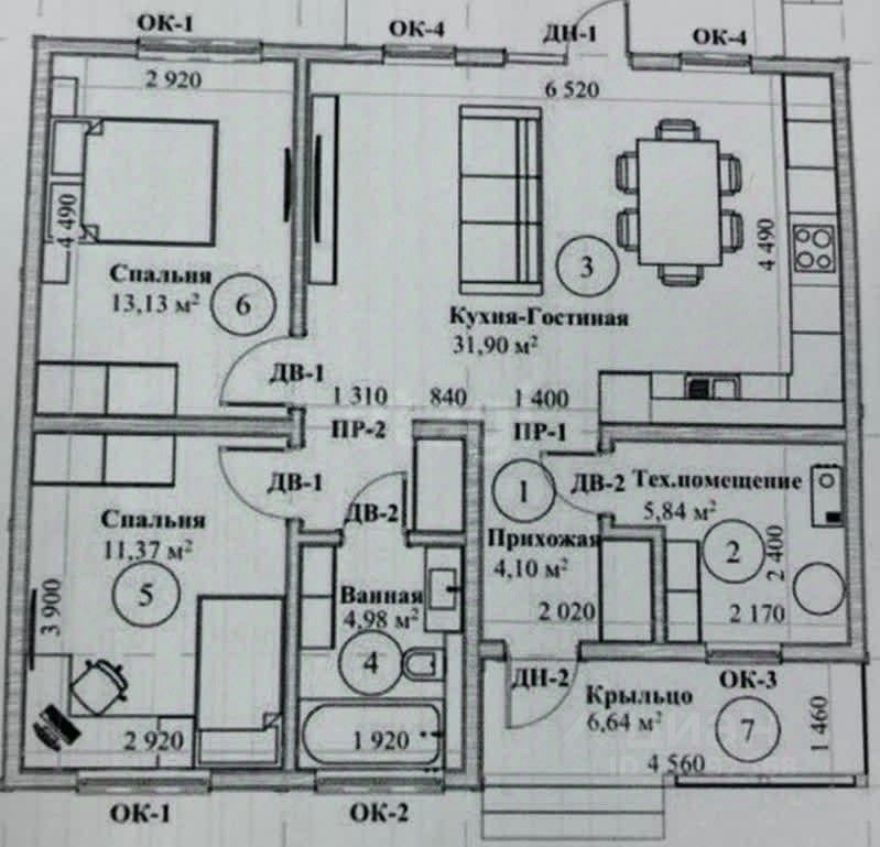 две просторные комнаты,светлая и уютная кухня-гостинная, удобная прихожая,большой санузел.