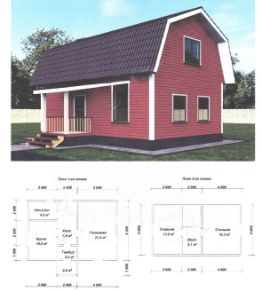 На первом этаже кухня, гостиная, санузел и ванная комната. На втором этаже 2 спальни.