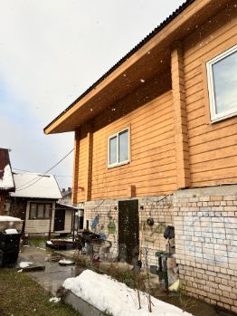 На территории двухэтажный дом (незавершенное строительство, 196 кв.м.) и двухэтажная баня (110 кв.м.), полностью приспособленная к проживанию и к использованию в качестве гостевого дома. Участок в собственности. Теплый сарай на территории для птицы.