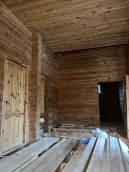 Дом из клееного бруса, теплый и солнечный. В доме 4 комнаты, плюс большой цокольный этаж и подвал.