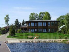 Эффектный деревянный дом, на первой линии залива р.Волги, наполненный светом и воздухом. Панорамные окна стирают границы и добавляют лёгкости и уюта. Кухня, столовая, гостиная и холл первого этажа составляют единую зону, не ограниченную стенами. Площадь дома 606 кв.м. Участок 48 соток.
