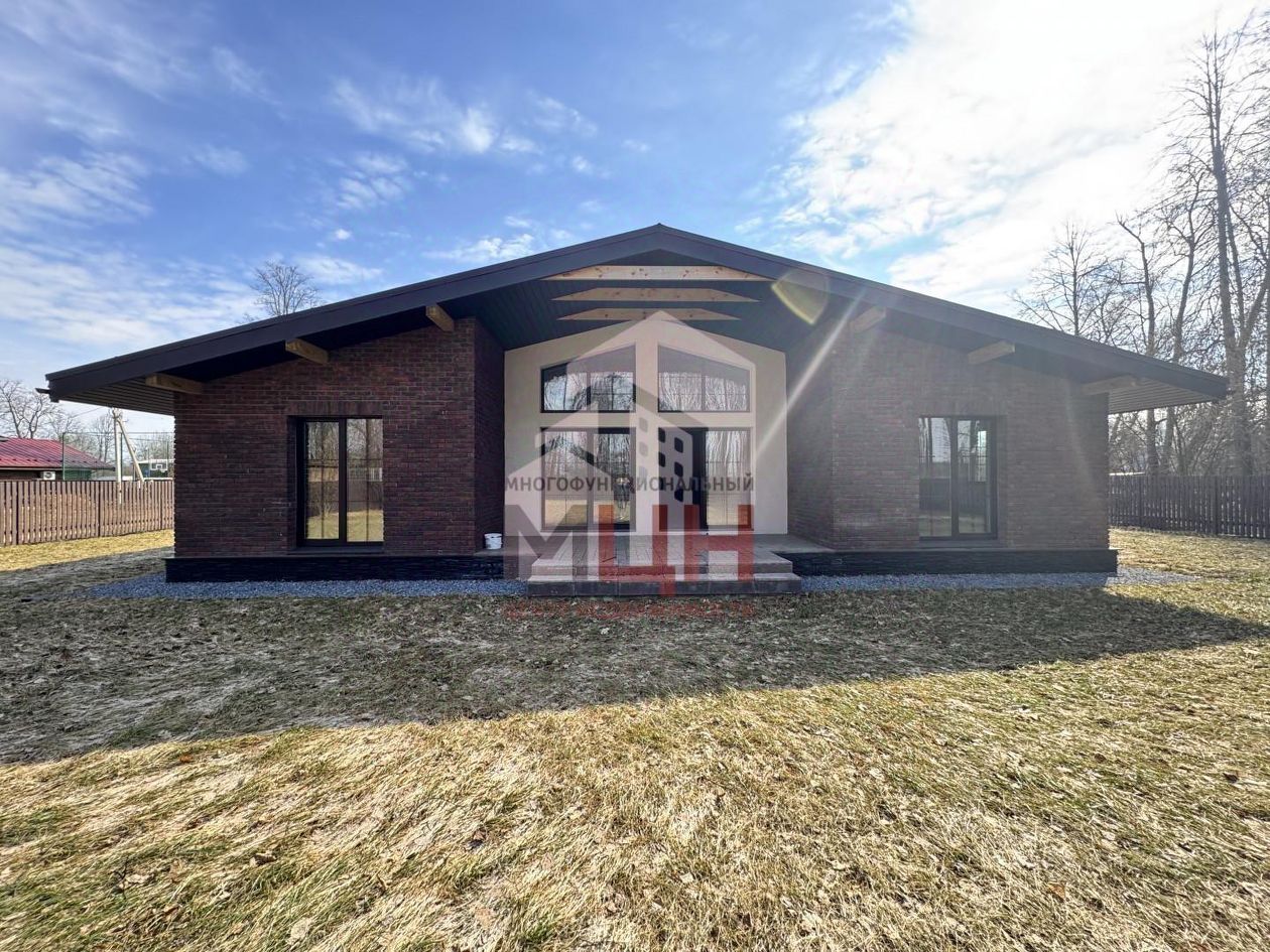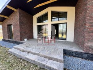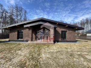 Дом-шале, одноэтажный 177 кв.м, построен из газоблоков, утеплитель и фасадный кирпич.