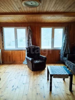 Дом внутри обшит ровной обработанной вагонкой. В кухне есть мойка, плита, холодильник и стиральная машина. Вода подается в дом от собственного колодца. Собственный 3-х секционный септик, рассчитанный на семью большое количество проживающих. В комнате — кровать, диван и два кресла. На веранде оборудована дровница. Вся эта мебель и техника остаются новым владельцам.