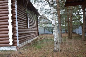 Дом деревянный бревенчатый: 2 этажа 230 кв.м., веранда, участок 15,9 соток. В доме есть вода (горячая и холодная), электричество, Триколор ТВ, интернет, все удобства (душ, туалет), камин. На 2-м этаже 4 комнаты по 12 кв.м., 2 балкона на разные стороны дома, большой подвал.