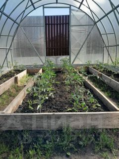 Участок ухожен и облагорожен: 2 теплицы, огород, клумбы, плодовые деревья и кустарники.