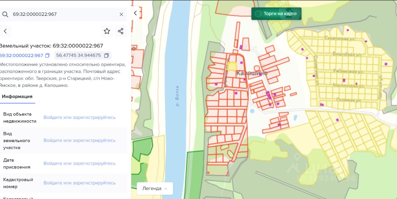 Земельный участок 2134 кв.м.(21.34 сот) на берегу р.Волга в Старицком районе, д. Калошино. Для индивидуального строительства. До города Старица 5 км, до Твери 75 км, до Москвы 260 км. Участок не обжитой. Кадастровый номер 69:32:0000022:967