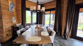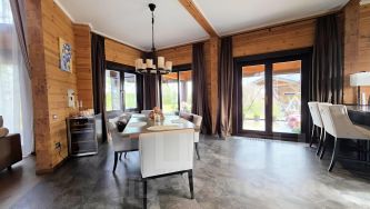 В новом посёлке Paradis Marina Village продаётся шикарный дом площадью 320м² из эксклюзивного клеёного бруса производства компании АПС ДСК. Кроме него на участке гостевой дом-баня 72м². Из комнаты и парилки прямой вид на воду. Также на участке гараж с комнатой для персонала. Все строительные и отделочные работы выполнены АПС ДСК. Дом проектировали для себя и получилось настолько удачно, что проект положил начало серии подобных домов.