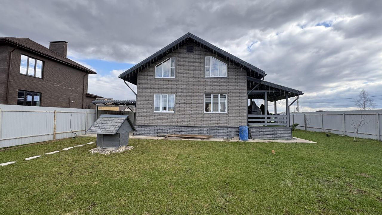 На первом этаже расположена просторная гостиная с выходом на террасу, кухня оборудована всей необходимой техникой, включая холодильник и плиту. На втором этаже находятся уютные спальни, оформленные в светлых тонах. В доме пять комнат, что позволяет комфортно разместиться большой семье.