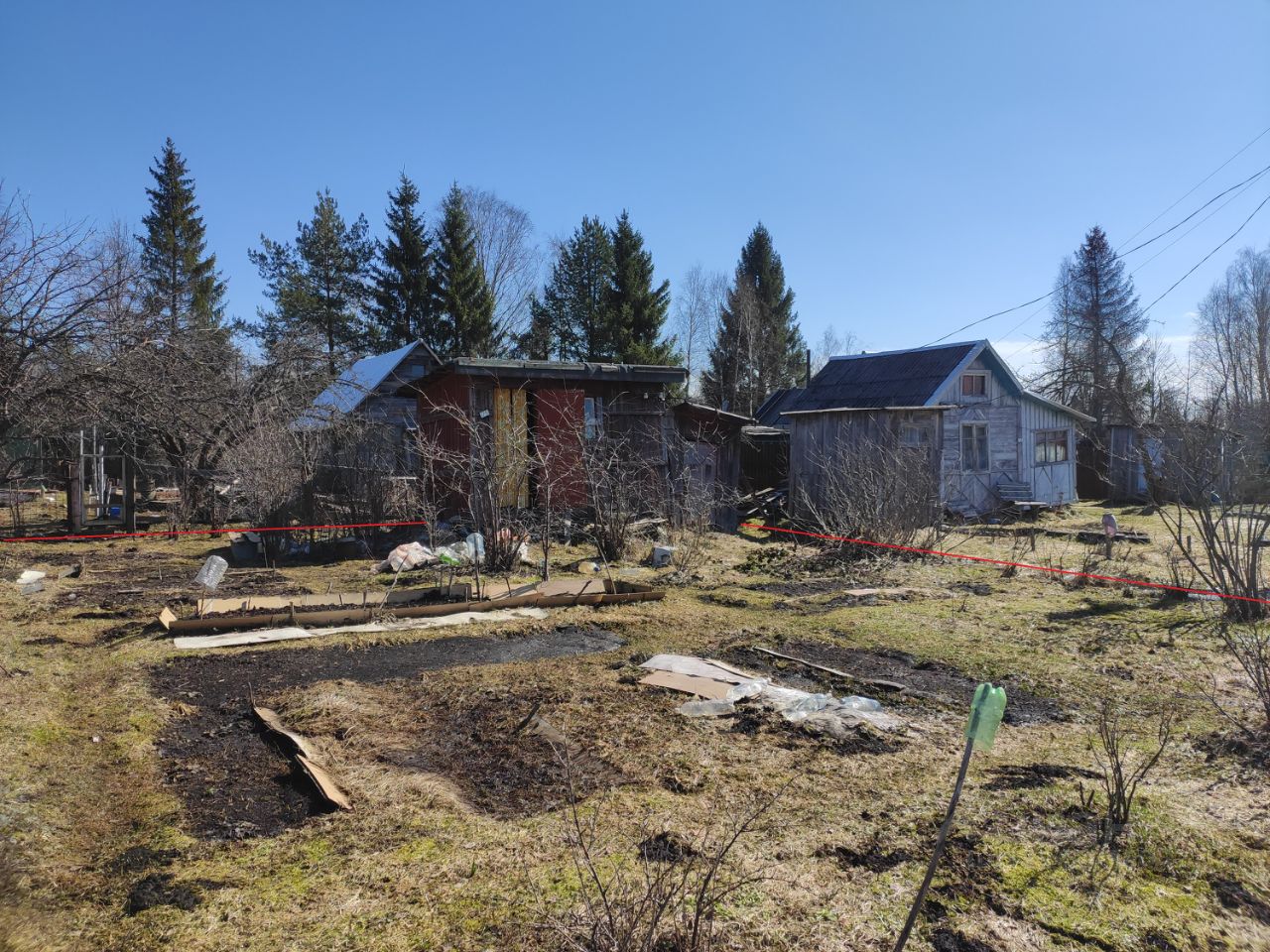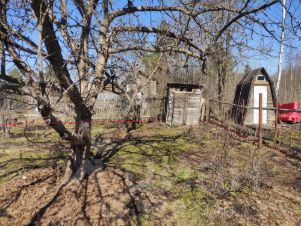 На участке две большие яблони, одна маленькое, вишня, голубика, подрастает облепиха.