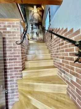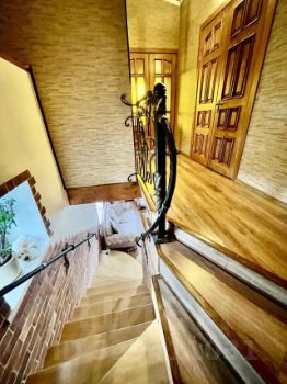 Лестница натуральное дерево с коваными перилами