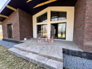 Дом-шале, одноэтажный 177 кв.м, построен из газоблоков, утеплитель и фасадный кирпич.