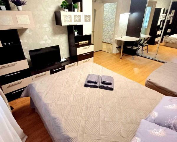 Сдаётся квартира в шаговой доступности от авто и жд вокзала (за Чикен Хаузом), могут свободно разместиться 3 человека. С лоджией, с новой современной мебелью и бытовой техникой на сутки. Стандартное время заезда с 14 часов, выезда до 12 часов. Всё нужное для проживания имеется: - Чистое постельное белье - Белые полотенца, тапочки, средства для гигиены, фен, утюг, пылесос. - Чай, сахар, соль, раст масло. Кухня полностью оборудованная всем для вашего комфорта: набор новой посуды, чайник, микроволновая печь, плита, холодильник, стиральная машина (ст. порошок) В комнате телевизор диагональ 42; интернет, Wi-Fi. Новая двух спальная кровать шириной спального места 140 см, ортопедический матрас и дополнительно имеется раскладной диван шириной спального места 90см. ПРИМЕЧАНИЕ: Квартира не сдается для проведения -мероприятий -вечеринок -дней рождений.