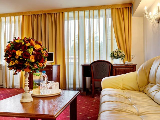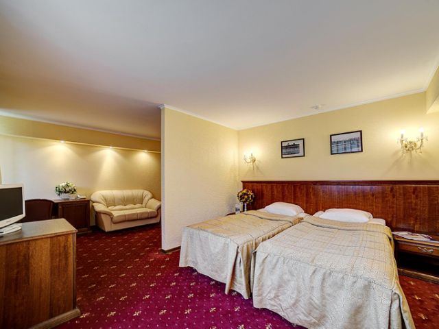 Отель на окраине Твери, в экологически чистом уголке соснового леса. Расположен на трассе Москва — Санкт-Петербург, в 165 км от Москвы и 435 км от Санкт-Петербурга. Удачное расположение на въезде в город со стороны трассы М10 будет удобно для проезжих туристов любых направлений. Расстояние до центра составляет Твери составляет 7 км, до ж/д вокзала 10 км. Аэропорт Шереметьево расположен в 169 км. Отель предлагает гостям 76 номера различных категорий комфортности: одноместные и двухместные Стандарты, Комфорты и Люкс. Светлые элегантные номера оформлены в классическом стиле и теплых тонах. В числе удобств — телевизор с плоским экраном, холодильник, комфортабельные кровати, индивидуальный санузел. Гостям предоставляются туалетные принадлежности, мягкие полотенца и фен. К услугам гостей ресторан на 200 посадочных мест. Это один из самых больших ресторанных залов города с индивидуальными системами вентиляции и кондиционирования. К услугам гостей доступны финская сауна, бассейн с купелью и мангальная зона. В отеле имеется конференц-зал оборудованный всем необходимым для проведения любого мероприятия, конференции, деловой встречи. Для автовладельцев организована парковка. Номер представляет собой комнату-спальню площадью 23 м². Оснащен современной сантехникой. Бесплатный WI-FI. Рабочий стол. Большая кровать (1,8 м х 2 м) или две отдельно стоящие кровати (0,9 м х 2 м). Мягкий кожаный диван (может использоваться как дополнительное спальное место). Ванная комната с душевой кабиной. Теплые тона и классическое оформление номера способствует снятию напряжения и приятному времяпрепровождению.