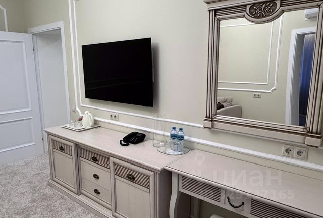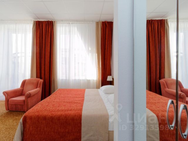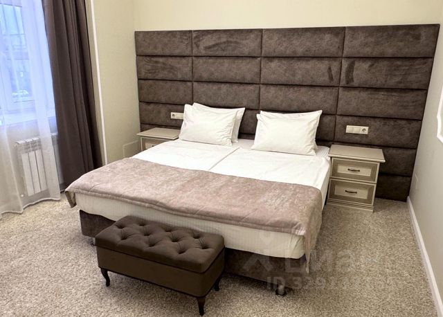 Двухкомнатный номер. В спальной комнате кровать 1,8*2м, прикроватные тумбы, плечики для одежды.