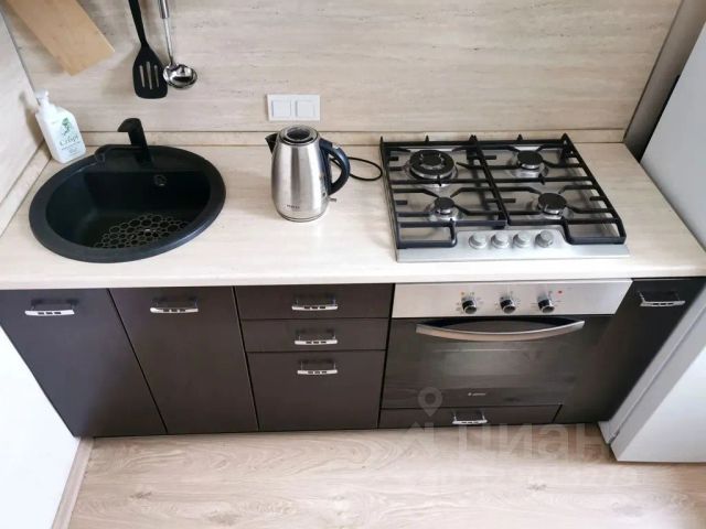 #Кухня с газовой плитой , холодильником, электрическим чайником, микроволновкой, обеденной зоной