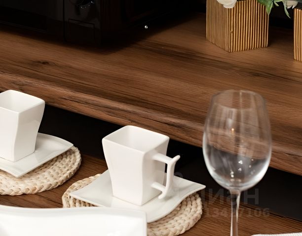 - удобная обеденная и кухонная зона с набором посуды, плитой, микроволновой печью, холодильником, чайником